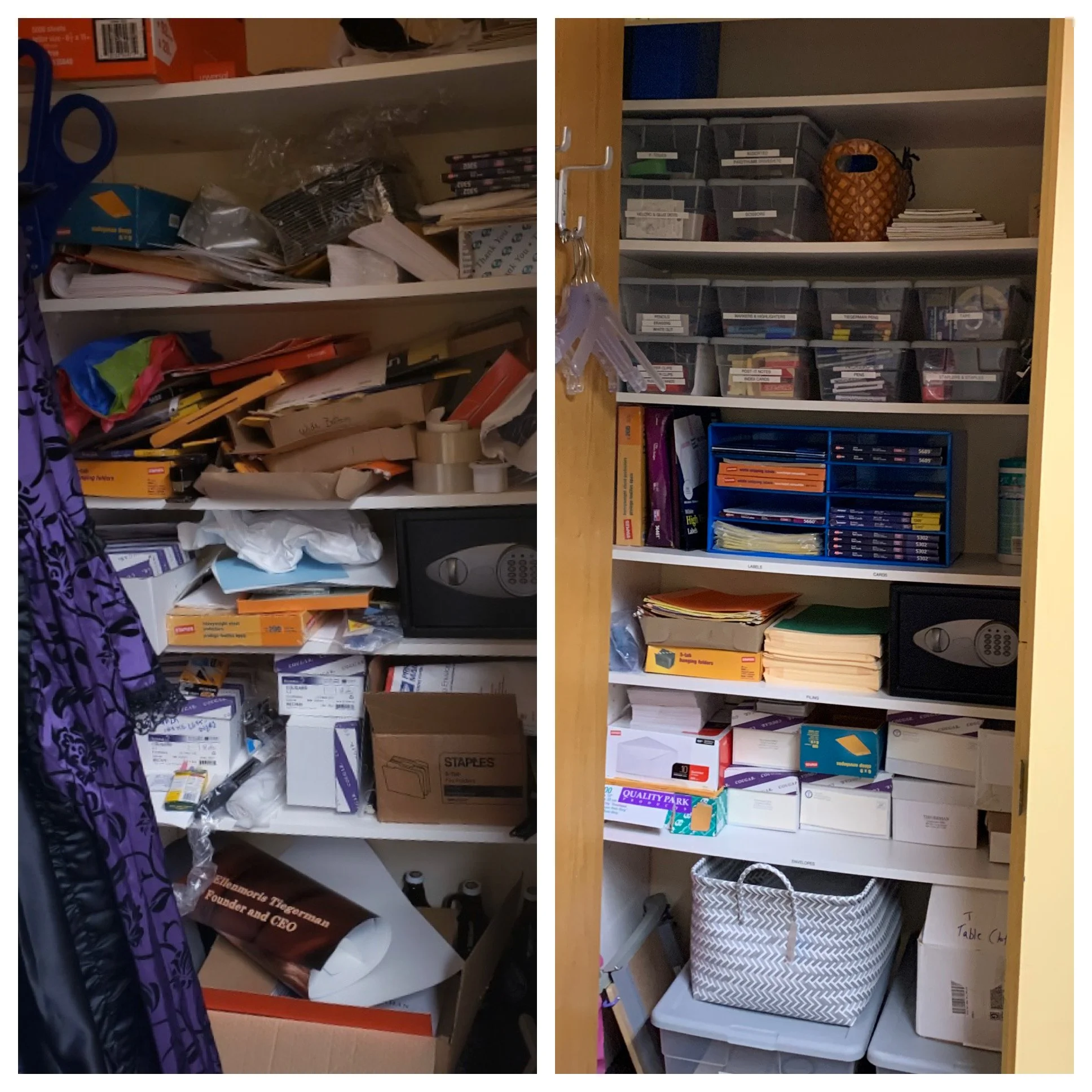 This before & after office project left the clients feeling effective and able to get work done. There is nothing like a peaceful workplace. Let’s get started organizing your office!